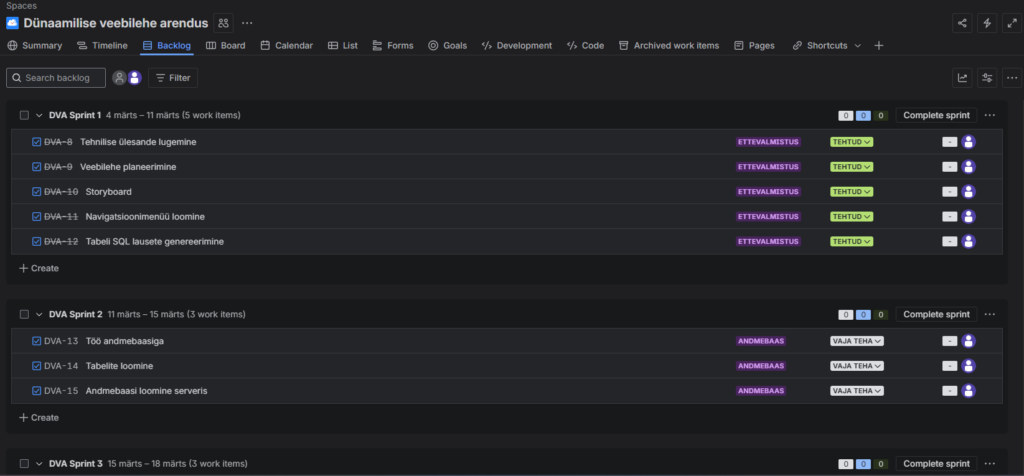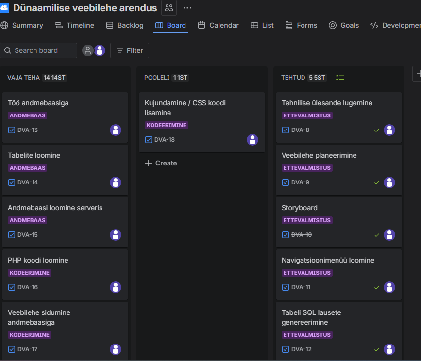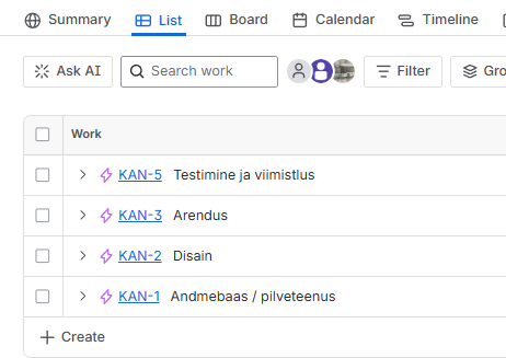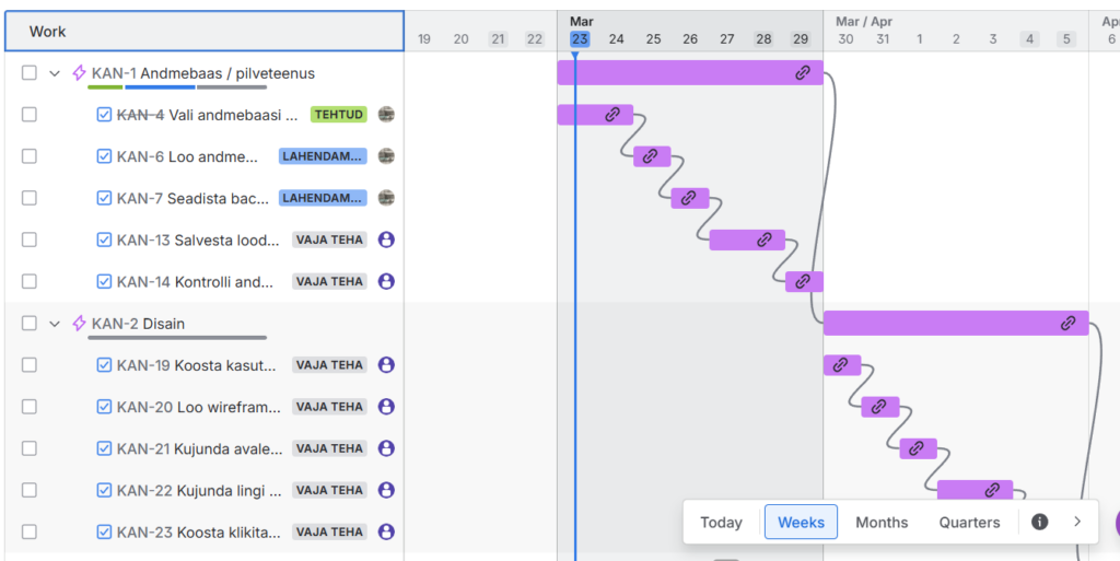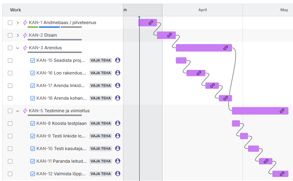 Siin on prioriteetide jaotus (jah, kõik on keskmise tähtsusega):