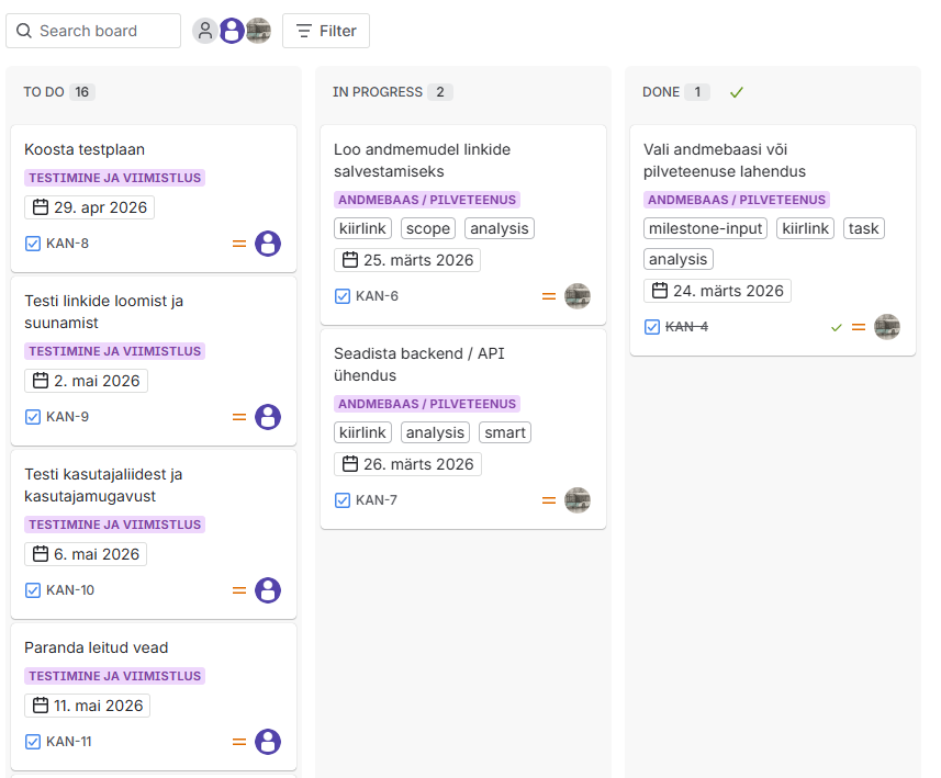 • Arendus: Siin kirjutate koodi ja loote rakenduse põhifunktsioonid nagu linkide lühendamine ja kuvamine.