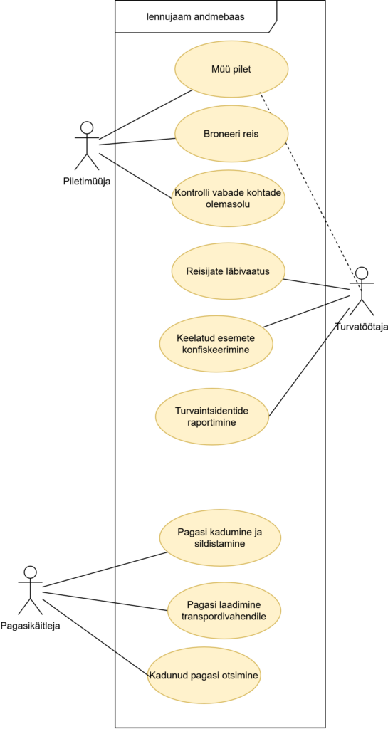 Kasutuslooskeem (Use case diagram) диаграмма прецедентов: Kasutuslooskeeme kasutatakse süsteemi moodustavate tähtsaimate elementide ja protsesside määramiseks. Primaarelemente nimetatakse “aktoriteks” (эктор) ning protsesse “kasutuslugudeks” (прецедент). Kasutuslooskeem näitab, millised aktorid suhtlevad iga kasutususlooga.