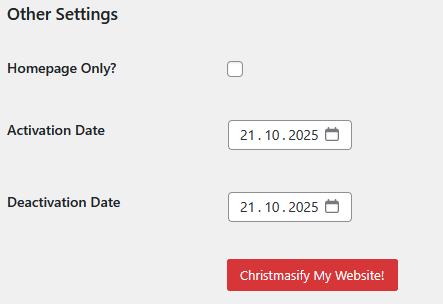 Siin saate valida erinevaid valikuid lumekestest aktiveerimise kuupäevani ja aegumiseni, kui soovite, et plugin lõpetaks töö: